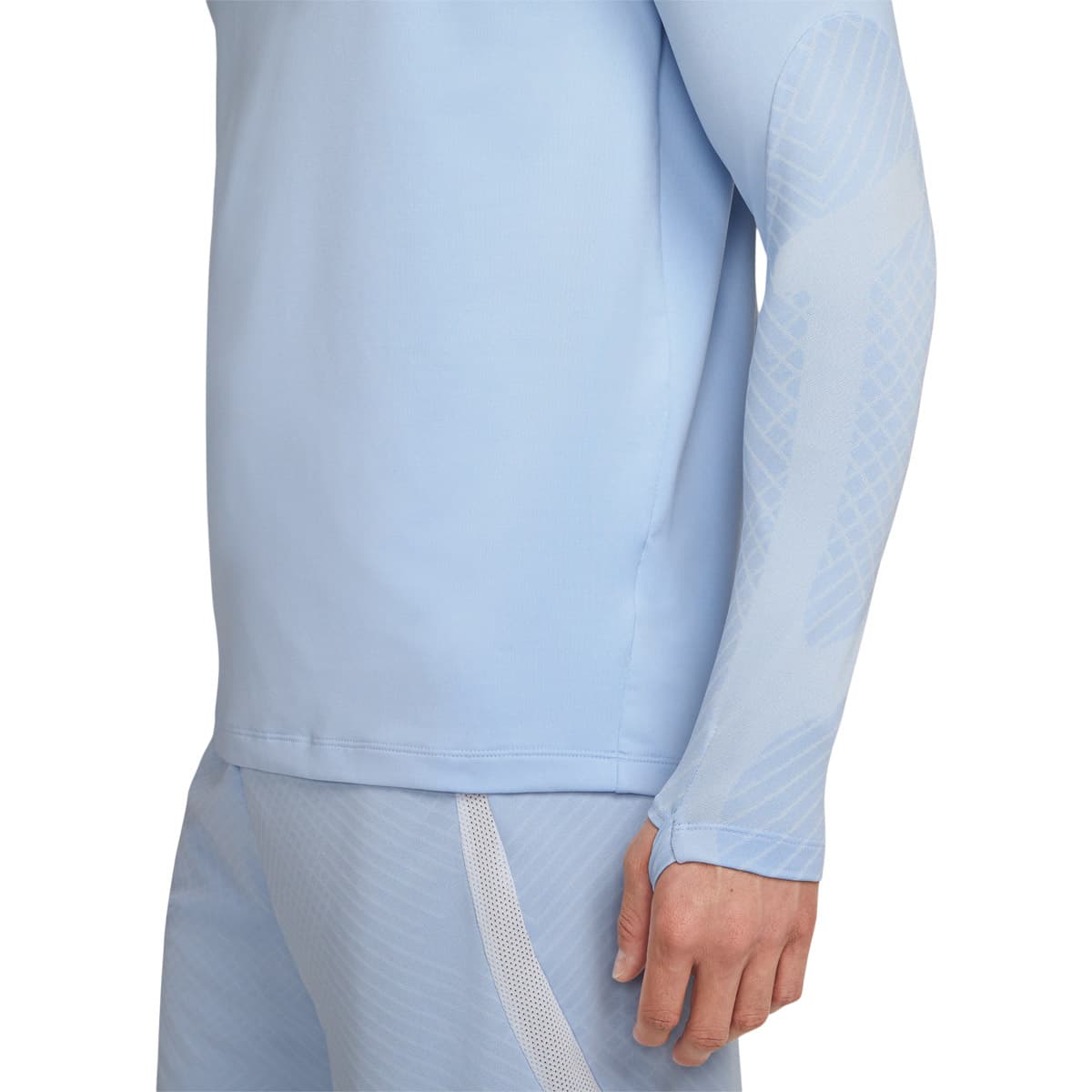 Trøjen er udstyret med Dri-FIT-teknologi, som effektivt transporterer sved væk fra kroppen og holder dig tør. Den halvlange lynlås giver mulighed for ventilation, mens de lange ærmer med tommelfingerhuller sikrer en tæt pasform og ekstra dækning. En forlænget ryg øger komforten, så du kan yde maksimalt på banen.